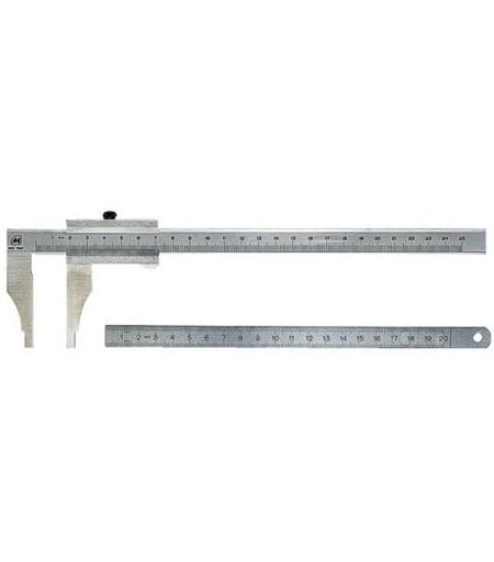 Acier inox trempé. Graduation chromée mat. Blocage à vis. Becs : 55 mm Capacité : 0 - 200 mm Lecture : 0,02 mm Coffret ABS. Livré avec un réglet 200 mm. ...