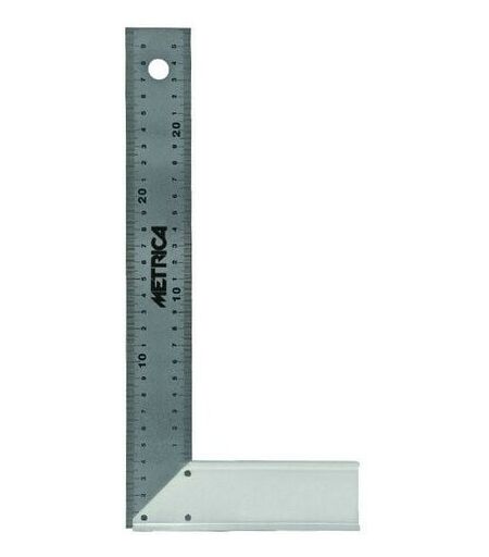 Metrica - Equerre de charpentier en inox 400 mm - 29221 - Lame en acier inoxydable trempé - Base en aluminium anodisé extrudé - Échelle gravée Caractéristiques techniques : Longueur : 400 mm ...
