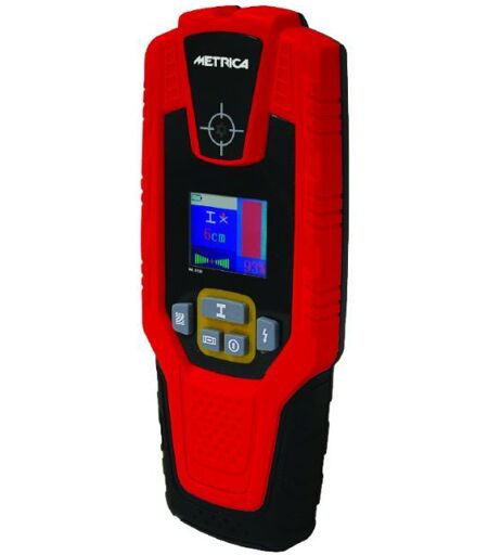 Détecteur de métaux, bois et câbles électriques Indication de la profondeur de détection : - Fer 100 mm - Bois 20 mm - Câbles sous tension 50 mm Niveau électronique avec inclinomètre ...