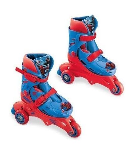 Rollers 3 roues évolutifs 2 en 1, décorés aux couleurs de Spider-Man. Idéal pour apprendre a faire du roller. 2 positions : 1 roue devant et 2 roues derrieres ou 3 roues en ligne. Roues en plastique (PVC), montées sur roulements. Diametre : 64mm. Taill ...