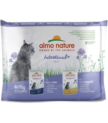 Almo Nature Holistic Intestinal Help pour chat - lot mixte : 3 x 70 g volaille + 3 x 70 g poisson