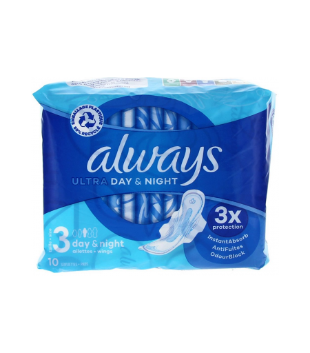 Parapharmacie > Hygiène & Premiers soins > Hygiène intime > Protection Always Ultra Day et Night 10 Serviettes Hygiéniques Taille 3 - Protection - Pharmacie en ligne LaSante.net