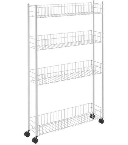 Etagère de rangement Metaltex Fino 4 niveaux Dimensions : 58 x 16 x 95 cm Couleur : blanc Avec roulettes Garantie 3 ans ...
