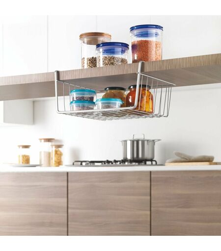 Une petite étagère à suspendre en cuisine La corbeille est une petite étagère utile pour y stocker des boîtes alimentaires, des bocaux, conserves ou autres éléments de cuisine. Grâce à cette étagère, vous bénéficiez de rangement supplémentaire dans une cuisine et d'un temps précieux à ne plus avoir besoin de chercher. La corbeille suspendue est simple à installer sur une étagère de cuisine. Vous n'avez pas besoin ni de visser ni de percer. La corbeille se glisse sous l'étagère. Avec un revêtement en Polytherm, la corbeille est protégée contre : la rouille la poussière les chocs Elle représente surtout un accessoire de rangement bien pratique pour des petits espaces comme des véhicules de loisirs (camping-car, van aménagé, fourgon, caravane, bateau...). Les points forts du rangement suspendu Metaltex Rangement supplémentaire Facile à installer Revêtement en Polytherm Revêtement Polytherm garanti 5 ans. Dimensions : 30 x 26 x 14 cm. Poids net : 0,3 kg ...