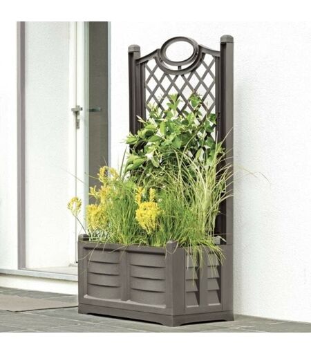 Jardinière avec un espalier qui peut être utilisée comme une cloison élégante et naturelle pour délimiter des espaces intérieurs ou extérieurs. Résistante et facile à assembler, sans besoin d'outils particulier, la finition crée un effet de bois très réaliste. Elle est résistante aux changements de température et à la lumière du soleil. Le treillage peut être installé au centre, avec un bac disponible à l'achat en option, référence 499900. . Couleur : Beige. Matière: Polypropylène. Longueur : 80 cm ...