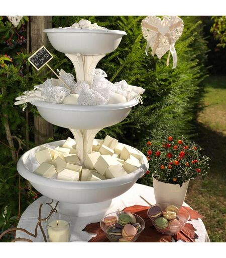 Bama - Triple pots de fleurs décoratif 3 niveaux - d 50 x h 64 cm - Blanc - Livraison gratuite
