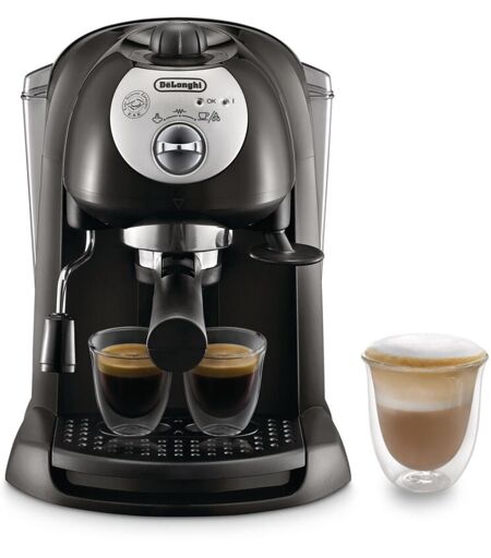 De'Longhi EC 201.CD.B. Type de produit : Machine à expresso, Type de machine à café : Manuelle, Capacité du réservoir d'eau : 1 L, Type de café utilisé : Dosettes de café, Café moulu, Récipient pour le café infusé : Tasse, Capacité en tasses : 2 tasses, Nombre de becs verseurs : 2. Puissance : 1100 W. Couleur du produit : Noir Conçue pour préparer d'excellents cafés expresso, la EC 201.CD.B est idéale pour préparer une mousse dense et abondante pour de nombreux cappuccinos, grâce au mélange parfait de vapeur, d'air et de lait. Arrêt automatique La machine s'éteint automatiquement après 9 minutes d'inactivité. Porte-filtre 1 pouce 2 en 1 pouces : le nouveau filtre à crème convient aussi bien au café moulu qu'aux dosettes de café ESE. Réservoir amovible Grand réservoir d'eau facilement amovible (1 l). ...