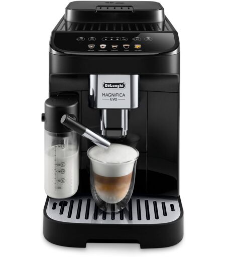 Performance, interaction et simplicité, voici les piliers sur lesquels repose l'Expresso Broyeur Magnifica Evo de De'Longhi ! Offrez-vous vos cafés préférés chaque jour en un seul geste. Au service du café Les commandes tactiles de la Magnifica Evo mettent à votre disposition cinq préparations de café pour s'adapter à tous les goûts et toutes les envies. Ces modes permettent à tous les utilisateurs d'accéder aux boissons pré-enregistrées et de laisser libre cours à leur imagination. Il suffit d'appuyer sur un bouton pour sélectionner la boisson de votre choix, y compris le MyLatte, des arômes puissant et une mousse de lait onctueuse ! Sa buse spécialement pensée pour réaliser une mousse de lait parfaite vous sert aussi bien de l'eau chauffée à la perfection que des latte onctueux et tendance. Grâce à la technologie De'Longhi, bénéficiez de 13 niveaux de mouture et d'une pré-infusion de votre café pour préserver les arômes et vous servir la boisson parfaite à tous les moments de la journée. Flexible et intuitif Avec 5 boissons café, une fonction eau chaude et une buse vapeur, Magnifica Evo s'adapte à tous les goûts. Son large réservoir accueille 250 grammes de grains tandis que son réservoir à eau de 1,8 litre est amovible pour le remplir facilement et profiter sereinement de vos cafés. Le plus : sa double buse vous permet de préparer deux cafés en même temps. La carafe à lait de l'expresso broyeur Magnifica Evo de De'Longhi dispose de programmes de rinçage et de détartrage automatiques et vous fait gagner du temps. Le plus : grâce à l'innovation et l'expérience De'Longhi, son bac à égouttement est lavable au lave-vaisselle pour un entretien simple et durable. ...