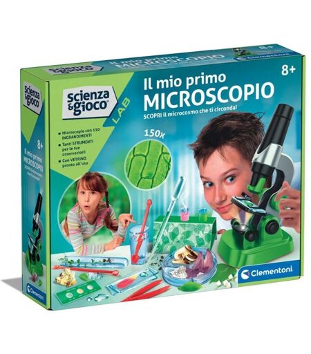 Un vero microscopio portatile facile da utilizzare per studiare gli oggetti che ti circondano e ingrandirli fino a 150 volte. Un microscopio per analizzare gli oggetti di uso quotidiano e vederli.. attraverso una nuova prospettiva! Un laboratorio scientifico per aspiranti piccoli scienziati! Ideato, progettato e sviluppato in Italia. Clementoni Science & Play Il Mio Primo Microscopio. Tipo di prodotto: Microscopio, Tema: Biologia, Età consigliata (min): 8 anno/iCaratteristicheTemaBiologiaTipo di prodottoMicroscopioEtà suggeritaBambinoGenere consigliatoBambino/BambinaEtà consigliata (min)8 anno/iIngrandimento150xPaese di origineItaliaGestione energeticaAlimentazioneNon supportatoBatterie richiesteNoDimensioni e pesoLarghezza imballo318 mmProfondità imballo260 mmAltezza imballo70 mmPeso dell'imballo462 gTipo di imballoScatola ...