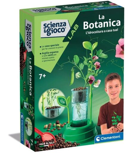n gioco innovativo per sperimentare il metodo della coltivazione idroponica! Con lo speciale vasetto potrai coltivare le piante senza bisogno della terra, osservando la crescita delle radici! Il kit contiene tutto il materiale per iniziare subito i tuoi esperimenti! Il ricco manuale illustrato contiene tutte le informazioni per guidare il bambino alla scoperta di questo nuovo metodo di coltivazione delle piante. Ideato, progettato e sviluppato in Italia. Clementoni Crea Idea La Botanica. Tipo di prodotto: Kit di attività manuali per bambini, Età consigliata (min): 6 anno/i, Colore del prodotto: Multicolore. Tipo di imballo: ScatolaCaratteristicheTipo di prodottoKit di attività manuali per bambiniGenere consigliatoBambino/BambinaEtà suggeritaBambinoEtà consigliata (min)6 anno/iColore del prodottoMulticolorePaese di origineItaliaAvviso di sicurezzaNon adatto ai bambini da 0 a 3 anniSìDati su imballaggioLarghezza imballo150 mmProfondità imballo210 mmAltezza imballo55 mmPeso dell'imballo280 gTipo di imballoScatola ...