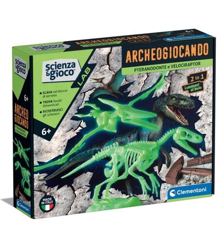 Con questo kit scientifico potrai scoprire i due temibili dinosauri: Velociraptor e Pteranodonte. Scava nei blocchi di terreno e recupera i fossili. Rivivi l'era Giurassica grazie alla realtà aumentata! Con l'app gratuita basta inquadrare con tablet o smartphone le carte contenute nel kit per far rivivere le creature leggendarie e scoprire così l'ambiente in cui sono vissute. Divertiti con gli effetti speciali, scatta tante foto, personalizzale e condividile! La confezione contiene martello e scalpello, per diventare un vero paleontologo. Consigliato per i bambini sopra i 6 anni Ideato, progettato e sviluppato in Italia. Clementoni Science & Play 19375. Tipo di prodotto: Kit per esperimenti, Tema: Paleontologia, Età consigliata (min): 8 anno/i, Colore del prodotto: MulticoloreCaratteristicheTipo di animaleDinosauroTemaPaleontologiaTipo di prodottoKit per esperimentiEtà suggeritaBambinoGenere consigliatoBambino/BambinaEtà consigliata (min)8 anno/iColore del prodottoMulticoloreUtilizzo raccomandatoInternoPaese di origineItaliaAvviso di sicurezzaAvvertenza sull'età della direttiva sulla sicurezza (2009/48/CE)Non adatto ai minori di 3 anniGestione energeticaAlimentazioneNon supportatoBatterie richiesteNoSostenibilitàCertificati di sostenibilitàForest Stewardship Council (FSC) MixDettagli tecniciApp necessaria per la piena funzionalitàSìCertificati di conformitàCEDimensioni e pesoLarghezza260 mmProfondità318 mmAltezza70 mmPeso980 gTipo di imballoScatolaDati su imballaggioQuantità per pacco1 pz ...