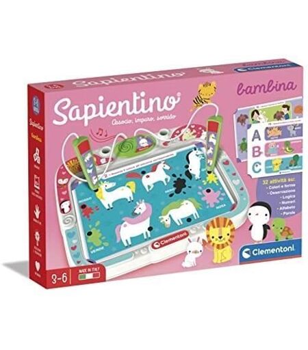 Clementoni- Sapientino Fille-Banc Avec Cartes D Activité Et Stylos Interactifs Jeu Éducatif 3 Ans Électronique Version Italien -Fabriqué En Italie 16385 Multicolore