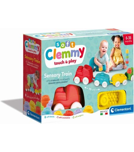 Un train avec la locomotive et ses wagons avec lesquels les enfants peuvent jouer et explorer. Les enfants peuvent découvrir les surfaces en relief, les différentes formes et ressentir la douceur du matériau Clemmy, tout en profitant d'une expérience sensorielle qui leur permettra de perfectionner leur sens du toucher et leurs compétences manuelles. Contient de nombreuses briques souples colorées a insérer dans la locomotive et les wagons, ou a empiler, pour créer des tours a renverser puis a reconstruire encore et encore. Les wagons peuvent etre facilement détachés et assemblés. Les roues permettent au train de se déplacer et permettent aux enfants d'inventer de nombreuses histoires et de voyager tout en douceur. Lavable au lave-vaisselle (70 ° C max). ...