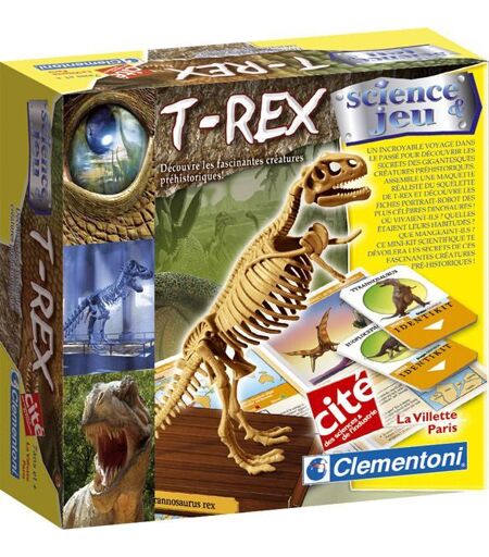 Jeu Mini - T-REX squelette de T- Rex à assembler Composé d'une maquette réaliste, des fiches explicatives sur le mode de vie du fameux T Rex. Ce dinosaures n'aura plus de secret pour l'enfant.Ce produit appartient à la collection Gamme scientifique de la marque CLEMENTONI. Référence produit : 62899 ...