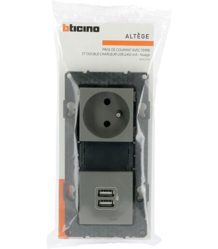 Legrand - Bticino - Prise de courant 16A + prise 2 usb 2,4A précâblées Altège - Finition Nuage