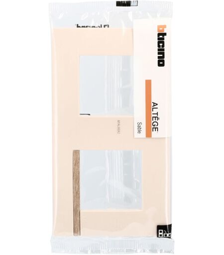 LEGRAND Bticino - Plaque Altège Déco 2 postes Sable - Sable satiné avec liseré effet bois