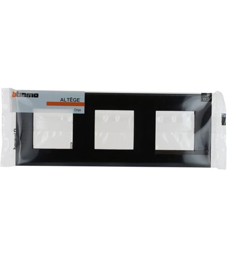 LEGRAND Bticino - Plaque Altège Déco 3 postes Onyx - Noir brillant avec liseré bois foncé