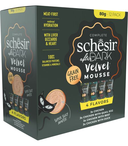 Schesir After Dark Velvet Mousse 12 x 80 g pour chat - lot mixte (4 variétés)