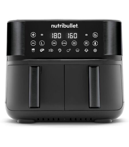 Air Fryer nutribullet Twin Drawer CARACTÉRISTIQUES Réglages indépendants des deux cuves. Cuisinez facilement différents aliments, à différentes températures et à différents moments. Avec une large plage de température de 80°à 200°C et une minuterie de 60 minutes. 8 modes de cuisson. Choisissez parmi 8 modes de cuisson préenregistrés ou réglez manuellement la température et le temps de cuisson, pour réaliser toutes vos envies. Arrêt automatique L'appareil s'éteint lorsque le programme ou le temps de cuisson est terminé. Facile à nettoyer. La cuve antiadhésive et la plaque sans BPA sont compatibles au lave-vaisselle. ...