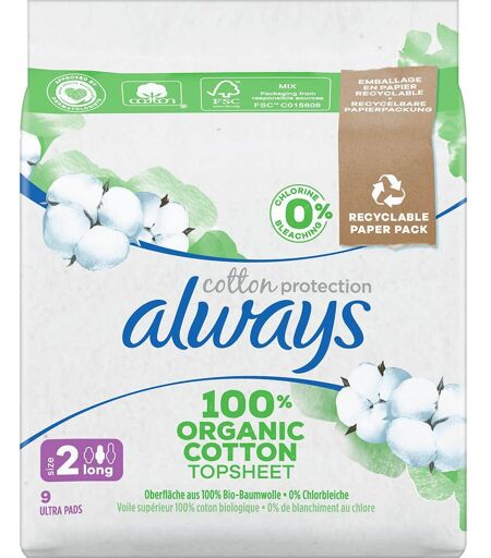 Always Serviettes Hygiéniques avec Ailettes Coton Taille 2 9 Unités