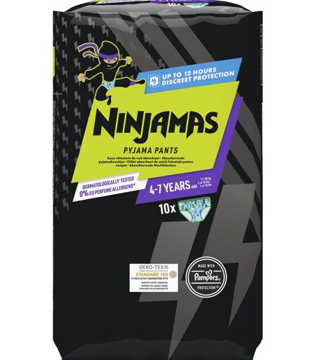 Pampers Ninjamas Pyjama Pants 4-7 Ans Vert Taille 7 10 Unités