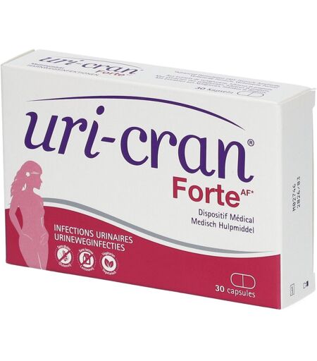 Dispositif médical qui traite efficacement les causes et symptômes des infections de la vessie sans complications¹ et aide à prévenir leur réapparition. Efficace chez 90 % des patients¹. Combinaison de xyloglucane et gélose, d’hibiscus et propolis. 1Garcia-Larrosa A. & Alexe O. Clin Microbiol 2016;5: 1. CONTRÔLE ET PRÉVIENT EFFICACEMENT LES INFECTIONS URINAIRES : Efficace chez 90 % des patients¹. Pour adultes uniquement INGRÉDIENTS : Xyloglucane et gélose, propolis et hibiscus (Hibiscus sabdariffa) POSOLOGIE : Au premier signe de symptômes, prendre 1 capsule avec de l’eau toutes les 12 heures, pendant 5 jours PRÉVENTION DE RÉCIDIVES : Pour éviter des récidives, prenez 1 capsule par jour avec de l’eau pendant au moins 15 jours consécutifs par mois, répétez si nécessaire CONTENU : 1x Uri-cran® Forte AF, dispositif médical pour le contrôle et la prévention des infections urinaires (cystites), 30 capsules Dispositif médical ; voie orale. Pour adultes. POSOLOGIE: Au premier signe de symptômes, prendre 1 capsule avec de l’eau toutes les 12 heures, pendant 5 jours. PRÉVENTION DE RÉCIDIVES : Pour éviter des récidives, prenez 1 capsule par jour avec de l’eau pendant au moins 15 jours consécutifs par mois, répétez si nécessaire. Xyloglucane et gélose, propolis et hibiscus (Hibiscus sabdariffa) Chaque capsule contient: 100 mg de xyloglucane, 50 mg de gélose, 100 mg de propolis, 100 mg d'Hibiscus sabdariffa, du dioxyde de silicium, du stéarate de magnésium (origine végétale) et de l'amidon de maïs. Consultez un médecin sans amélioration sensible après 48h et également en cas de fièvre, de grossesse et d’allaitement.Ce dispositif médical ne peut être utilisé que par des adultes. Le diagnostic d’une infection urinaire doit être posé par un médecin. Une infection urinaire aiguë peut nécessiter un traitement antibiotique. Uri-cran® Forte n’a pas d’effet bactéricide ou bactériostatique. Il ne peut donc pas remplacer un traitement antibiotique, mais il peut être administré simultanément. Même si aucun effet indésirable n’est connu, il est recommandé de ne pas utiliser le produit pendant la grossesse ou l’allaitement, sauf avis contraire d’un professionnel de santé. Ne pas utiliser le produit après la date de péremption imprimée sur l’emballage. Ne pas utiliser le produit si le blister est ouvert ou endommagé. Conserver à température ambiante. Ne pas congeler. Garder le produit hors de portée des enfants. Uri-cran® Forte ne doit pas être utilisé chez les personnes présentant une hypersensibilité connue au xyloglucane, à la gélose ou à l’un des autres ingrédients du produit. Fabricant légalNoventure S.L. - Av. Diagonal, 549 -08029 Barcelona – EspagneM. +34 93 205 27 18W. www.noventure.come-mail: vigilance@noventure.comDistributeur: P&G Health Belgium BV/SRL - Temselaan 100 - 1853 Strombeek-Bever - Belgique ...