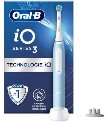 Braun Brosse a dents électrique Oral-B iO3s - Bleue - Connectée Bluetooth, 2 Brossettes, 1 Étui De Voyage