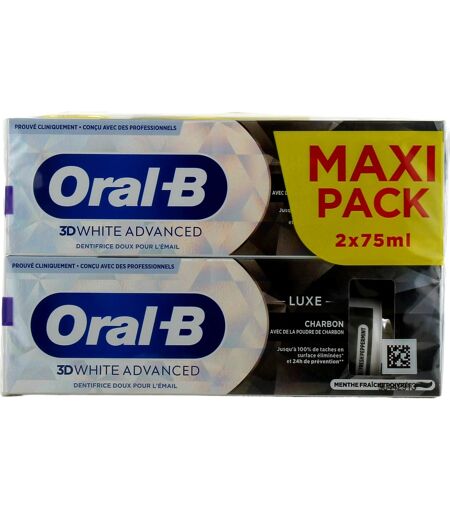 Oral-B Luxe Charbon 3D White Advanced Dentifrice 2x75ml