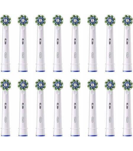 Braun Oral-b Pro Cross Action Brossettes pour Brosse à dents électriques, Pack De 16 Unités, Convient à Une Boîte Aux Lettres,Blanc (8006540859858)