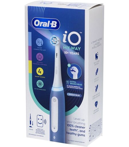 Lorsque les enfants deviennent adolescents, leur bouche fait face à de nouveaux défis : bagues, élastiques, gencives sensibles, mauvaise haleine et plus encore. Améliorez leur brossage grâce aux avantages de la brosse à dents électrique Oral-B iO My Way. La brossette ronde inspirée par des dentistes, dotée de filaments à micro-vibrations, leur procure une sensation de propreté purifiante professionnelle tout en douceur pour les dents et les gencives, à chaque brossage. De plus, elle comprend une brossette Nettoyage ciblé séparée, conçue avec des dentistes pour nettoyer les zones difficiles à atteindre. C’est tout simplement la brosse à dents électrique idéale pour les adolescents, avec ou sans appareil dentaire. Bénéfices La brossette de soin douce protège les dents et les gencives sensibles tout en éliminant efficacement la plaque bactérienne nocive Comprend une brossette nettoyage ciblé pour les zones difficiles d’accès, comme entre les bagues de l’appareil 4 modes intelligents pour personnaliser votre brossage : Propreté, Douceur, Super Douceur, Blancheur Le capteur de pression intelligent vous avertit à l’aide d’une alerte rouge, blanche ou verte si vous appliquez trop de pression, pas assez, ou si vous vous brossez les dents juste comme il faut Contenu : 1 manche iO My Way, 2 brossettes, 1 chargeur ...