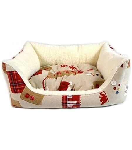 Panier à motifs de Noël, intérieur doux et chaud, contenant un coussin épais amovible à deux côtés (un côté à motifs et de l'autre à fourrure). Convient pour chien et chat. Matière: 80% coton et 20% polyester. Dimension: L.65 cm x l.50 cm x H.20 cm ...