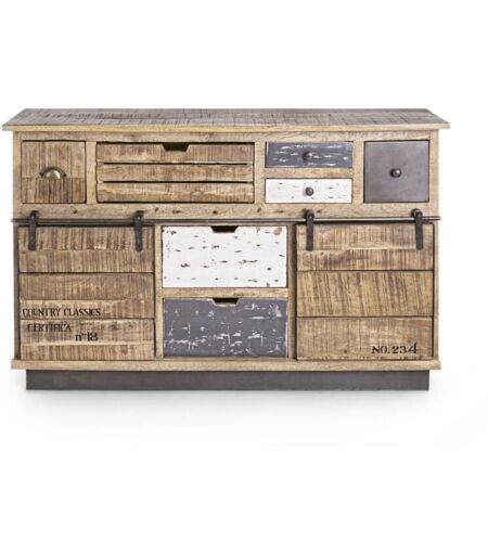 HELLIN Buffet 2 portes 7 tiroirs 125x37x80 cm en manguier et acier - YENICE