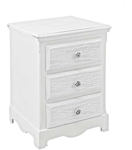 Commode à 3 tiroirs en bois blanc Blanc Détails techniques: Mdf. finition blanc mat, façades et plateaux effet décapé. poignées en polyrésine. Les mesures: 40 cm de longueur 34cm de large 63,5 cm de haut ...