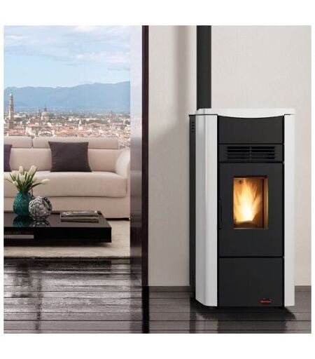 Poele a' granule's La Nordica Extraflame Giusy Plus Evo 9,1 kW gainable gaine acier blanc 230 m chauffe' ...