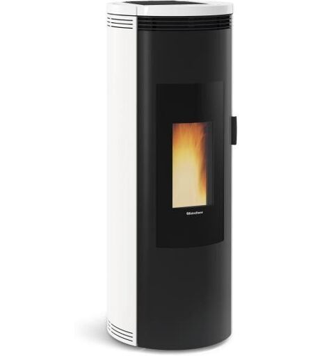 Poêle à granulés de bois Amika - Habillage acier blanc et dessus en faïence - Porte en fonte - Chambre de combustion étanche entièrement en fonte - Réservoir hermétique - Bougie en céramique avec système d'allumage de dernière génération - Brasier en fonte - Large cendrier en fonte - Pression contrôlée en deux points distincts de la chambre de combustion pour fournir une plus grande sécurité - Échangeur de chaleur tubulaire - Pressostat de sécurité - Système EAC : air primaire et secondaire équilibrés électroniquement pour une combustion et un rendement thermique optimaux - Système ACC : augmente le rendement de la combustion et la durée de vie des parties sujettes à usure et, en même temps, diminue le nettoyage du brasier - Système CGC : grâce à un parcours spécifique d'air préchauffé, il évite l'encrassement de la vitre du foyer - Système ACF : règle la vitesse de la ventilation frontale en privilégiant le silence du poêle - Chronothermostat hebdomadaire avec 4 tranches horaires - Système RTC : la sonde ambiante optimise le confort et permet une réduction sensible des consommations - Borne thermostat ambiant TA -Télécommande infrarouge ir touch avec affichage rétro-éclairé - Possibilité de commandes à distance par smartphone avec le kit WiFi en option - Adapté aux habitations conformes à la RT 2012 et CSTB - Capacité de la trémie : 15 kg - Prise d'air raccordable sur l'extérieur Ø 50 mm - Raccordement arrière Ø 80 mm. Le prix indiqué comprend la TVA à 20%. ...