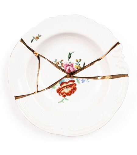 L'art japonais Kintsugi prend des formes contemporaines. La porcelaine délicate est glorifiée et enrichie de fragments d'or pour une collection d'art de la table faite de compositions charmantes et inattendues. Design : Marcantonio Matériel : Porcelaine, or Taille : ø cm. 22 h.4 ¿ ø 8,7' h 1,6' ¿ Lavable au lave-vaisselle ...