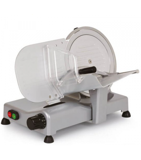 Certifications CE domestique, Matériau de la lame de coupe acier trempé, Diamètre lame de coupe 250mm, Matériau de la base aluminium vernis, Matériau de la voile aluminium, Pays de fabrication Italie, Matériau du couvre-lame aluminium galvanisé, Conseillée pour: Charcuteries tendres, Conseillée pour: Charcuteries affinées, Conseillée pour: Viandes, Conseillée pour: Pain de mie, Conseillée pour: Fromages semi-affinés, Conseillée pour: Légumes, Type de moteur électrique monophasé, Puissance nominale (W) 140W, Type de transmission à courroie, Matériau du chariot aluminium et plastique, Plateau couvre-lame amovible par poignée de déplacement non, Affûteur - amovible ...