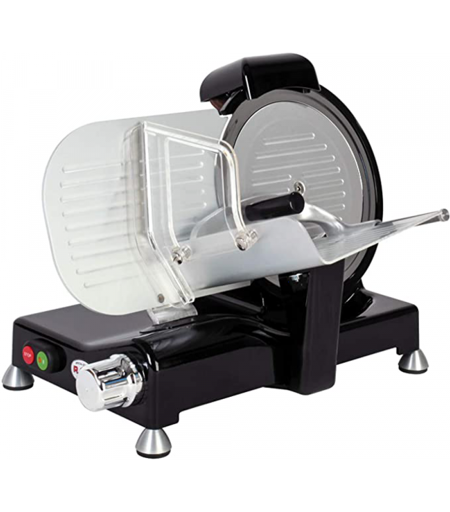 Certifications CE domestique, Matériau de la lame de coupe acier trempé, Diamètre lame de coupe 250mm, Matériau de la base aluminium vernis, Matériau de la voile aluminium, Pays de fabrication Italie, Matériau du couvre-lame aluminium galvanisé, Conseillée pour: Charcuteries tendres, Conseillée pour: Charcuteries affinées, Conseillée pour: Viandes, Conseillée pour: Pain de mie, Conseillée pour: Fromages semi-affinés, Conseillée pour: Légumes, Type de moteur électrique monophasé, Puissance nominale (W) 140W, Type de transmission à courroie, Matériau du chariot aluminium et plastique, Plateau couvre-lame amovible par poignée de déplacement non, Affûteur- fixe ...