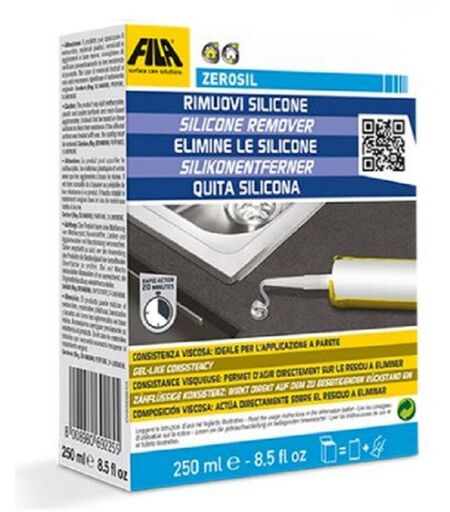 250ml - Fournisseur: FILA - Reference: 60922512 - - FilaZEROSIL - Élimine les résidus de silicone, colle, ruban adhésif, vieilles étiquettes et les résidus de mousse de polyuréthane - Efficace aussi pour enlever les résidus de cire de bougie, de résine, des taches grasses et d'huile en général - Grâce à la spatule pratique incluse dans l'emballage, l'élimination des résidus est rapide et facile - Utile également pour éliminer les taches de goudron et de bitume - S'utilise également sur les marbres, les pierres, les joints et autres matériaux absorbants pour l'élimination des résidus - Consistance visqueuse : permet d'agir directement sur le résidu à éliminer, en maximisant l'efficacité du produit et en évitant le gaspillage - Action rapide : il détache la silicone durcie en seulement 20 minutes après l'application - Agréable parfum d'agrumes - Idéal pour grès cérame, céramique, marbre, verre, métal Attention : Le produit peut opacifier le méthacrylate, les matériaux en plastique, ...