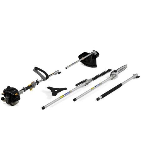 Le multi-outil 5 en 1 Alpina AMT 26 est un outil vraiment polyvalent et efficace pour faire face à différentes tâches dans le jardin. Il est équipé d'un outil d'élagage , d'un taille-haie et d'un coupe-herbe : tout dans le jardin peut être réalisé avec ce multi-outil! Un harnais simple pour un confort maximalest inclus. Le système de démarrage facile vous permettra de démarrer le moteur quand vous le souhaitez, quelle que soit la température extérieure. Equipé d'un moteur essence de 25,4 cc , comprend une connexion élagueuse et taille-haie, une rallonge de débroussailleuse, une tête fil nylon et une lame 3T. Détails du produit: Nom du produit: AMT 26 – 5 en 1 Source d'énergie: Thermique 2-temps Puissance: 0.7 kW Cylindrée: 25.4 cc Type de démarreur: Lanceur à corde Easy Start Longueur de coupe: 43 cm Longueur de lamier: 43 cm Écartement des dents: 25 mm Longueur du guide: 25 cm Vitesse de chaîne: 5 m/s Capacité réservoir d'huile de chaîne: 0.12 L Type de chaîne: 3/8” .050” (91PJ-40X) ...