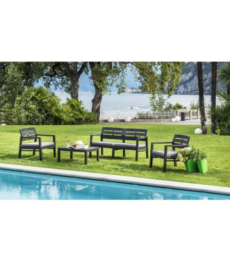 Progarden - Salon d'extérieur avec 2 fauteuils 1 canapé 1 table basse avec coussins, Made in Italy, Couleur anthracite