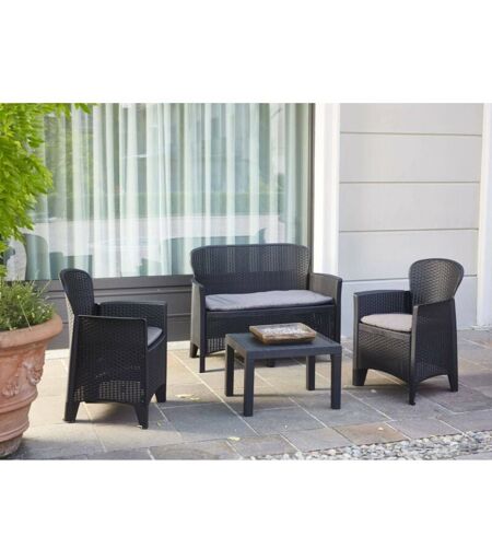 Description générale L'ensemble de jardin Jungle offre un confort optimal pour vos moments de détente en extérieur. Composé d'un canapé deux places, de deux fauteuils une place et d'une table basse, cet ensemble au design élégant et moderne s'intègre facilement à tout type d'espace extérieur, comme un jardin, une terrasse ou un balcon. Spécifications techniques Matériau : Résine de haute qualité Couleur : Anthracite Dimensions : Canapé (113 x 57 x 85,5 cm), Fauteuils (60 x 58 x 85,5 cm), Table basse (59 x 46 x 40 cm) Poids : 29 kg Résistance : Anti-UV et intempéries Compatibilité et accessoires Comprend des coussins pour un confort supplémentaire Idéal pour des espaces extérieurs de taille moyenne Installation Le montage de l'ensemble est simple et rapide. Suivez les instructions fournies pour assembler les différentes pièces. Utilisation Parfait pour se détendre en extérieur, cet ensemble est idéal pour des brunchs ou des apéritifs en plein air. Son design accueillant et ses coussins ...