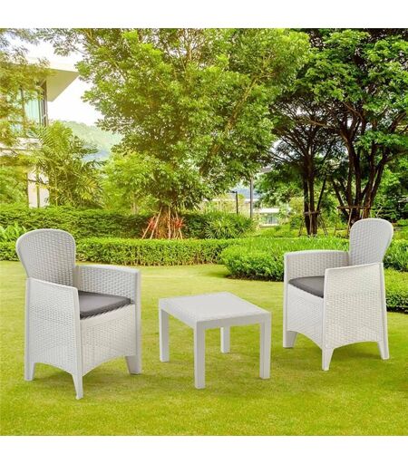 Ipae Progarden - Salon intérieur et extérieur composé de : 2 fauteuils et 1 table basse, avec coussins, Made in Italy, coloris blanc