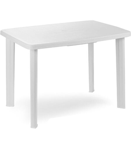 Description générale Table rectangulaire blanche en PVC, modèle Faretto, avec coins arrondis et trou central pour parasol. Idéal pour vos repas en extérieur, elle apporte une touche moderne et fonctionnelle à votre jardin. Spécifications techniques Couleur : Blanche Matériau : PVC/Polypropylène Dimensions : 101 x 68 x 72 cm Poids : 6,1 kg Coins : Arrondis Trou central pour parasol Pieds démontables 100% recyclable Compatibilité et accessoires Compatible avec la plupart des parasols standard grâce à son trou central. Adaptée pour un usage domestique, pas recommandée pour un usage professionnel. Installation Les pieds de la table sont démontables, facilitant le rangement et le transport. Suivez les instructions fournies pour un montage rapide. Utilisation Idéale pour les repas en extérieur, cette table est résistante aux agents atmosphériques, aux moisissures, au smog et à la poussière. Parfaite pour recevoir vos amis et votre famille durant l'été. ...