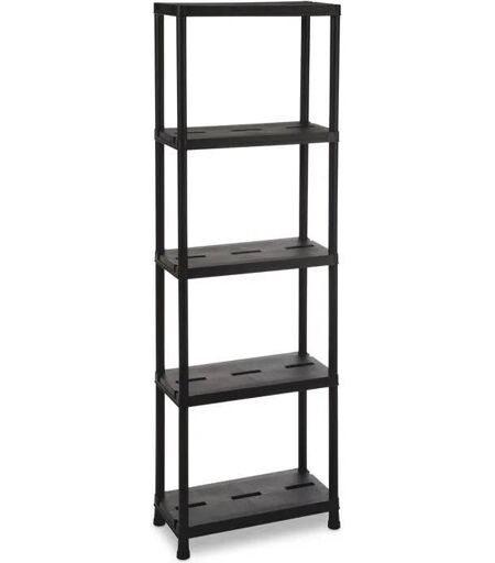 Etagere - plastique, étagere, pour cuisine ou garde-manger, 5 étageres, capacité des étageres 30 kg, couleur noire des étageres, capacité totale 150 kg, sans vis, couleur noire de la construction, dimensions 180 × 60 × 30 cm (H×L×P) ...