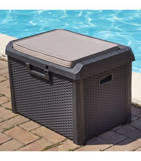 Coffre de rangement Toomax compact Santorini plus effet rotin 125 litres anthracite e'quipe' de coussin ide'al pour l'inte'rieur et l'exte'rieur ...