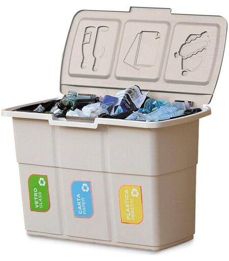 TOOMAX Fraschetti - Poubelle de tri 3 bacs de 25L Dim 75 x 37 x H50 cm Avec couvercle Recyclage 3 en 1 dea home