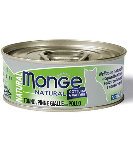 Monge Chat Thon au Poulet 80g Monge Chat Adulte Morceaux de Thon et de Poulet est un aliment complémentaire cuit à la vapeur pour chats adultes. Contient du thon et du poulet de haute qualité - une source de protéines à haute valeur nutritionnelle et digestible. La recette enrichie en fructo-oligosaccharides (FOS) soutient une fonction intestinale normale. Nourriture sans colorants ni conservateurs ajoutés, ne contient pas de céréales. COMPOSITION : Thon albacore (Thunnus Albacares) 50 %, poulet 25 %, riz 1 %, FOS (fructo-oligosaccharides). CONSTITUANTS ANALYTIQUES : Protéines brutes 18 %, fibres brutes 0,5 %, matières grasses brutes 1 %, cendres brutes 1 %, humidité 79 %. ADDITIFS : Additifs nutritionnels/kg : Vitamine E (acétate de DL-alpha-tocophéryle) 50 mg. MODE D'EMPLOI : Servir à température ambiante ou réchauffé. Après ouverture, conserver au réfrigérateur et consommer dans les 2 jours. Conseils d'alimentation : Apports journaliers recommandés pour un chat de poids moyen : 4/5 ...