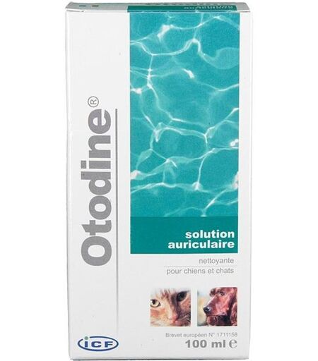 Pourquoi utiliser Otodine ?Otodine est une solution brevetée pour le nettoyage des oreilles des chiens et chats qui contient une combinaison unique de chlorhexidine et de Tris-EDTA. Ce soin peut être utilisé seul ou en complément du traitement de l'otite (due par exemple à des Malassezia (levures) et à des bactéries). Il ne pique pas, n'est pas ototoxique et peut être utilisé chez les chiens en cas de rupture du tympan (mais pas chez les chats présentant une rupture du tympan). Ce soin peut être utilisé après avoir nettoyé l'oreille avec Otoact®. Ne pas toucher la peau avec l'embout du flacon. 1. Appliquer la solution dans le conduit auditif jusqu'à ce qu'il soit complètement rempli.2. Masser délicatement la base de l'oreille pendant au moins 1 minute. 3. Laisser agir quelques minutes.4. Sécher soigneusement le conduit auditif à l'aide d'une boule de coton ou d'une gaze enroulée autour d'un doigt et retirer tous les débris résiduels, y compris à l'intérieur du pavillon de l'oreille.6. D'autres produits auriculaires peuvent être appliqués au bout de 10 minutes.7. Appliquer deux fois par jour pendant au moins 14 jours. - Digluconate de chlorhexidine- Tris-EDTA- pH 8,0 ...
