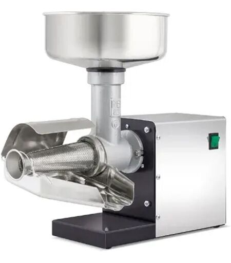 Le presse-tomate électrique Reber 10900N est le choix idéal pour ceux qui souhaitent préparer des purées de tomates et des confitures avec facilité et précision. Doté d'une coque robuste en acier inoxydable 18/10 (AISI 304) et d'un moteur économe en énergie de 250 W, ce presse-tomates assure une production de 70 à 140 kg par heure, parfaite pour un usage domestique ou semi-professionnel. Le Reber 10900N est conçu avec des matériaux de haute qualité : le cône de filtration, l'entonnoir, la goulotte et la protection contre les éclaboussures sont tous en acier inoxydable, tandis que le corps est en fonte peinte, conforme aux normes alimentaires. L'hélice interne, essentielle pour le traitement des tomates et des sauces, est fabriquée en résine acétal durable, garantissant une longue durée de vie et une résistance aux acides. Ce robot à tomates polyvalent peut être transformé en hachoir à viande grâce à l'option en fonte n° 5 (non incluse) et supporte une variété d'accessoires optionnels ...